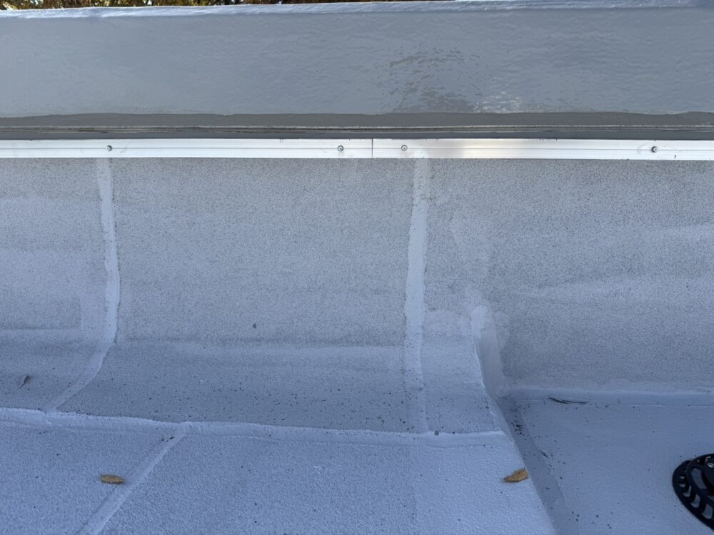 屋上の立ち上がり部分(パラペット)については、液体状の防水材(ウレタン防水)を使用し、つなぎ目のない防水層をつくります。複雑な形にもなじみやすいため、すき間からの雨水の侵入を防ぎます。