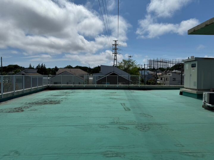 バルコニーおよび屋上についてはトップコート(保護塗装)を施工し、防水層の劣化を抑制することで、雨水の侵入防止と防水性能の維持を目的とします。